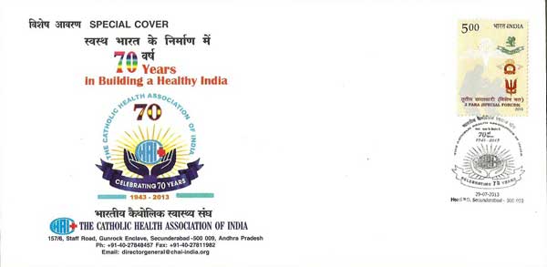 Special Cover on 70 years Celebrations of The Catholic Health Association of India, Secunderabad - 29th July 2013.