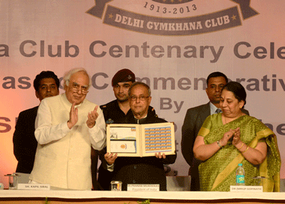 The President of India, Shri Pranab Mukherjee released a Commemorative Postage Stamp and Centenary Souvenir to mark the 100th Anniversary of the establishment of the Delhi Gymkhana Club on 3rd July 2013.