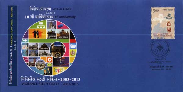 Special Cover issued to mark 10th Anniversary of Vigilance Study Circle - 6th July 2013.