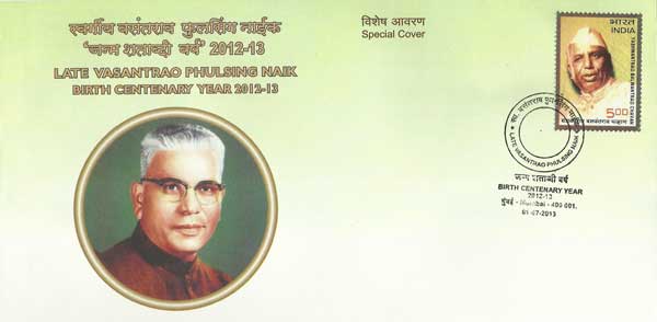 Maharashtra Postal Circle issued a special cover to mark the birth centenary year of Vasantrao Phulsing Naik on 1st July 2013 at Mumbai.