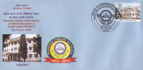 Special Cover issued to mark Diamond Jubilee Celebrations of Dental Education in South India at Chennai - 14.08.2013.