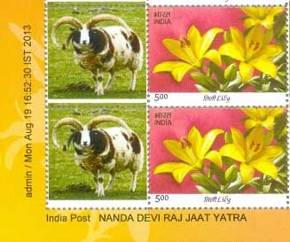 Two Customised sheetlets of My Stamps on Nanda Devi peak and four horned ram (khadu) were also issued on 19 Aug 2013.