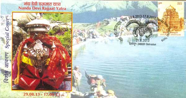 A special cover and a special cancellation on Nanda Devi Raj Jaat Yatra was released on 21 August 2013, at Hotel Madhuban, Rajpur Road, Dehradun by Shri Vijay Bahuguna, Chief Minister of Uttarakhand and Shri Tarun Vijay, MP, Rajyasabha. Chief Postmaster General, Uttarakhand Circle Shri Ramanujan presented the album to the dignitaries. Abhai Mishra, Rajesh Varma, Madhukar Jhingan and Savita Jhingan were present from the philatelic fraternity. "Kala Samman" was bestowed on Abhai Mishra and Rajesh Varma for serving the cause of philately by the Chief Minister of Uttarakhand.