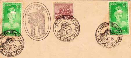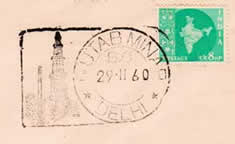 As per available information, Pictorial Cancellations of permanent nature were first provided sometime in 1951. Such known cancellations are from Qutab Minar, Sanchi, Ajanta etc. Known example of "Sanchi, Bihar" is of 30th Nov. 1952, examples of "Qutab Minar" are of 10th Nov. 1954, 12th Oct. 1955 and 29th Nov. 1960 and example of "Ajanta" is of 8th June 1965. Another example of Sanchi is of 13th May 1965.